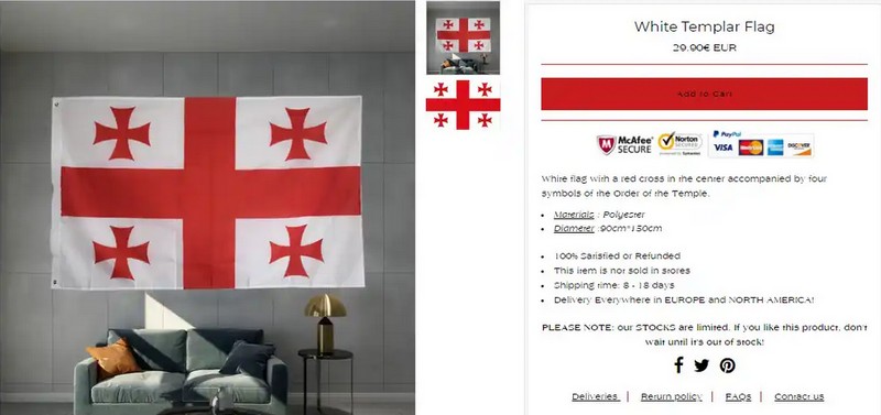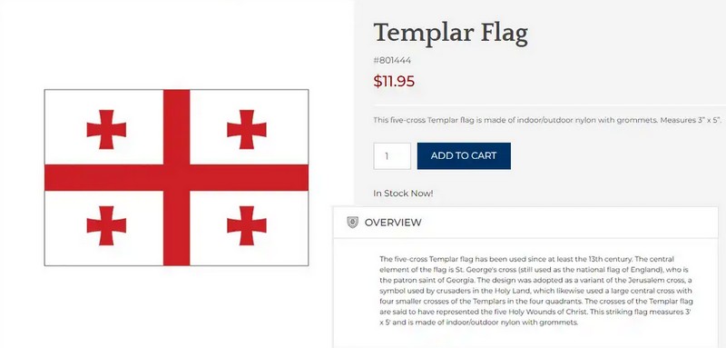 Но так или иначе реликвии уничтоженного ордена по-прежнему пользуются немалым спросом на международных аукционах. Среди которых — их флаги, удивительнейшим образом напоминающих флаг современной Грузии. Причем задача в духе частых примеров их Интернет-СМИ «найдите 10 отличий» в данном случае выглядит просто нерешаемой — ибо отличий то практически и нет.