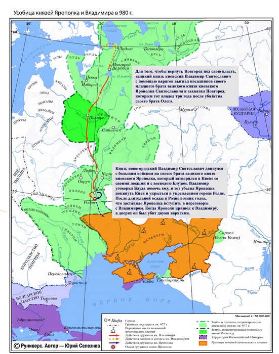 С князя Ярополка Святославича — начинаются первые значимые междоусобицы на Руси, внутренних раздоры, в которых порой гибли самые близкие — братья, соратники, наследники великих родов. Судьба князя Ярополка, старшего сына знаменитого Святослава Игоревича, стала одной из самых трагических и в то же время переломных в истории ранней Руси. Его краткое княжение ознаменовалось не только борьбой за власть и гражданской войной, но и первыми попытками объединить под своей рукой земли по новым государственным принципам.