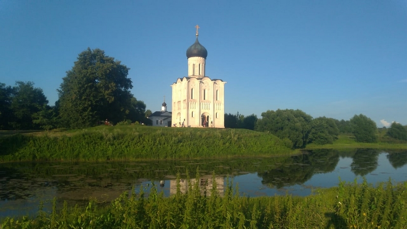 Трудно передать то восхитительное восторженное чувство, когда выходишь на Боголюбовский луг (особо охраняемая природная территория) и начинаешь приближаться к Чуду… Когда-то, в далёком XII веке, для церкви было выбрано место на подступах к Владимиру, который, по замыслу Андрея Боголюбского, ни в чём не должен был уступать Киеву. Церковь возводили у места впадения реки Нерли в Клязьму. Устье со временем сместилось, и те воды, в которых так поэтично отражается храм, лишь старица. А когда-то здесь пересекались важные речные пути, и корабельщики, плывшие во Владимир, именно отсюда наблюдали великолепную панораму на сам Владимир и Боголюбов. Церковь являлась как бы визитной карточкой князя, предвосхищала встречу с последующим великолепием. Можно сказать, что Владимир оказывал на людей XII века такое же впечатление, как на людей XVIII столетия производил С.-Петербург.