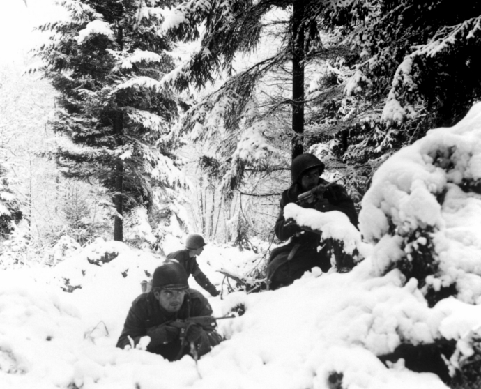 Американские солдаты занимают оборонительные позиции в Арденнах