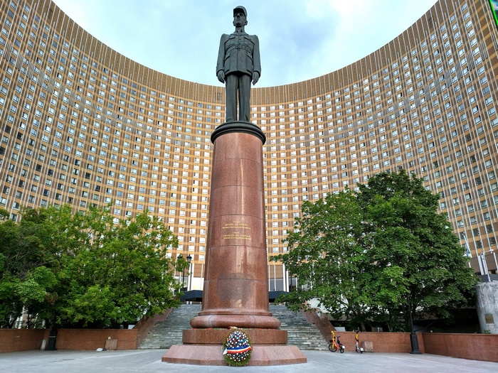 Памятник — словно застывший выстрел, решительный памятник Шарлю де Голлю, установленный внутри подковы гостиницы «Космос» в Москве. Памятник — свидетельство международной славы, равно гипнотизирующей силы, исходящей от образа, с которым время не может сделать ничего, кроме как поместить в свои анналы.Вторая мировая зачёркивает периоды обыденности, проходя полосато по странам, по народам...