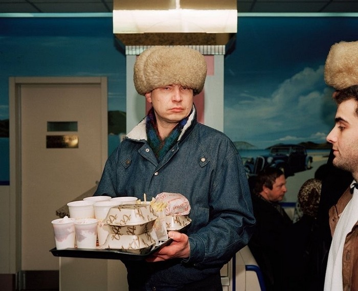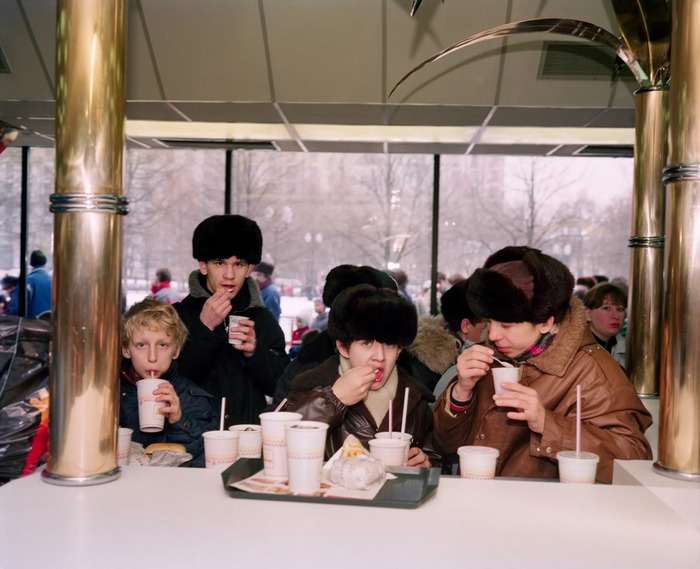 Собственно, бессчётные толпы за «американским счастьем», пожалуй, самая известная «советская» работа Парра. 35 лет назад, 31 января 1990 года, почти за пару лет до распада СССР, в Москве открылся первый McDonald's — символ «западного вторжения» в коммунистический мир. Парр запечатлел огромные очереди москвичей, ждущих «Большой Мак» за символическую для американцев, не для советских людей, — плату в 5 рублей (стоимость полного сета: Биг Мак + картошка фри + напиток). Снимок стал метафорой конца эпохи: от дефицита к потребительскому буму. В постсоветских странах это фото ассоциируется с надеждой на «свободу» в кавычках и получившимся в итоге хаосом перемен и беспределом. Фото вошло в мировую серию о глобализации и часто цитируется как «прощание с СССР».