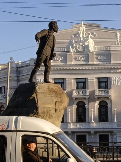 Ровно напротив Уральского федерального университета им. первого Президента России Б.Ельцина — памятник Якову Свердлову.