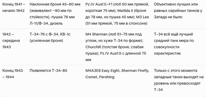 Для наглядности приведём сравнительную табличку по танкам той эпохи: