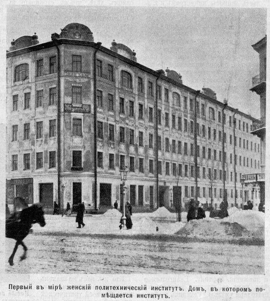 До революции таких выпускниц набралось около 50 по всем специальностям — архитекторы-строители, химики-электромеханики. Многие из них корпели над реальными проектами: мосты через Неву и другие реки, здания вроде гостиницы «Астория» или дома Гвардейского экономического общества, ныне «Большой Гостиный Двор» в перестроенном виде, электростанции, фабрики.