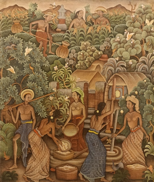 Темы, отражающие повседневную жизнь, стали востребованными в творчестве живописцев с 1930-х по 1950-е годы. Простые сцены, изображающие сельские работы, такие как пахота, высаживание риса, толчение зерна в ступе и его провеивание в плетенных лотках, а также сбор фруктов начали активно отображаться на полотнах. Эти сюжеты, которые были знакомы каждому балийцу, стали не только отражением их жизни, но и способом привлечения внимания туристов, что, в свою очередь, способствовало развитию художественного рынка на острове.