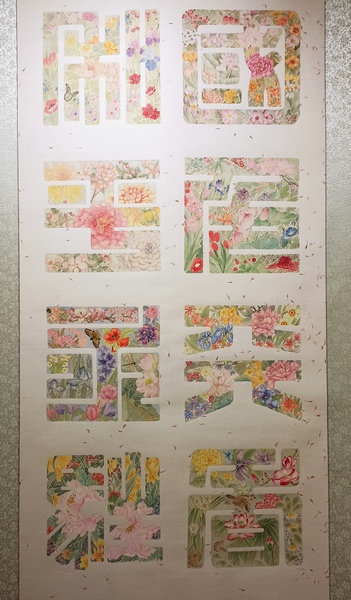 В культурной традиции Китая пион занимает особое, почти сакральное место, выступая национальным символом. Он ассоциируется не только с красотой, но и процветанием, славой и достатком, что нашло широкое отражение в классической живописи. Изображения пионов нередко воспринимаются как визуальные пожелания благополучия и успеха. В русской культурной среде этот цветок также наделен глубоким смыслом, связанным с памятью, преемственностью и уважением к истории. Именно поэтому художественная серия «Сто пионов» органично перекликается с проектом «Цветущие иероглифы», приуроченным к 80-летию Победы в Великой Отечественной войне.Особое место в проекте занимает поэтическая строка эпохи Тан: «Пионы столь прекрасны, а их аромат столь дивен, что сам мир кажется вечным». Эта цитата стала источником вдохновения для восьми участников проекта «Цветущие иероглифы». Каждый из них создал авторский иероглиф, оформленный как самостоятельное художественное произведение в жанре «цветы и птицы» — одном из наиболее почитаемых направлений китайской живописи, особенно в рамках стиля гунби.