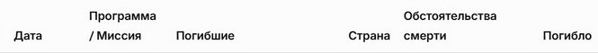 - СССР/Россия — 4 космонавта погибли непосредственно во время космических полётов.