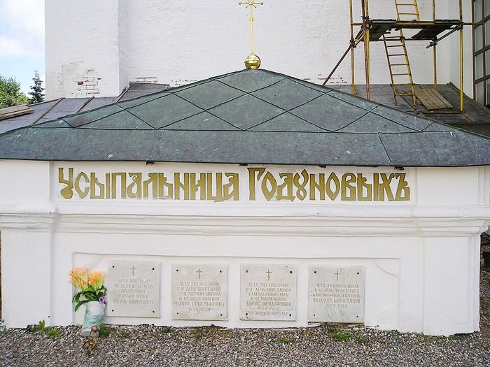 Ещё одна здешняя затворница, мимо судьбы которой невозможно пройти равнодушно, — Ксения Борисовна Годунова, дочь царя Бориса Годунова и царицы Марии Григорьевны Скуратовой-Бельской. У Бориса Годунова выросло двое детей: дочь Ксения (Аксинья, как было принято говорить в те времена и как пишет о ней сам отец) и её младший брат Фёдор. Известная своей трагической судьбой Ксения — одна из самых известных русских царевен, воспетая в народных песнях времён Смуты. До наших дней дошли две из них, записанные одним иностранцем.