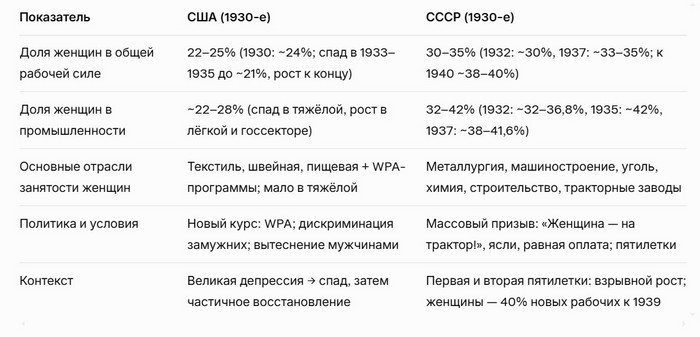 Тут и отсутствие государственной политики массового вовлечения женщин в «мужские» профессии. И сильные культурные, чисто американские стереотипы: инженерия ассоциировалась с тяжёлым физическим трудом и «мужским» мышлением. Да, доступ к вузам в принципе был, но — часто с соответствующей дискриминацией: мало женщин брали на практику, стажировки. Экономика 1920-х (до Великой депрессии) не требовала такого массового привлечения женщин, как индустриализация в СССР.