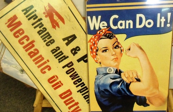 Только во время Великой депрессии и особенно Второй мировой войны женщины массово пошли на заводы и в инженерию: постер Rosie the Riveter — буквально Рози-клепальщица — один из самых узнаваемых символов американской истории Второй мировой войны, воплощающий вклад миллионов женщин в военную промышленность США. Но даже тогда доля оставалась низкой по сравнению с советским опытом. К 1950 году женщин среди инженеров в США всё ещё было менее 1 %.