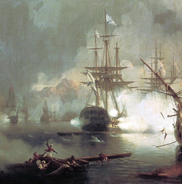 «Азов» на картине Айвазовского «Сражение при Наварине», фрагмент, 1848 г.