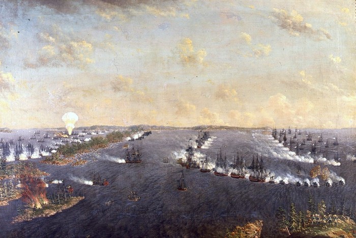 20 октября 1827 года соединённый флот союзников подошёл к берегам Пелопоннеса, где у западного побережья в бухте Наварин сосредоточился турецкий флот под общим командованием Мухаррем-бея и Ибрагим-паши. Этим флотом была доставлена из Египта десантная армия отъявленных фанатиков, которая должна была высадиться в Греции и окончательно истребить православное население. Сражение стало неизбежным после того, как фанатики-египтяне убили английского и французского парламентёров, посланных к Ибрагим-паше. Союзный флот вошёл в обширную Наваринскую бухту и начался кромешный артиллерийский бой на ближних дистанциях между судами противников. Особенно досталось русскому флагманскому линейному кораблю «Азов». Он один сражался с пятью турецкими судами!