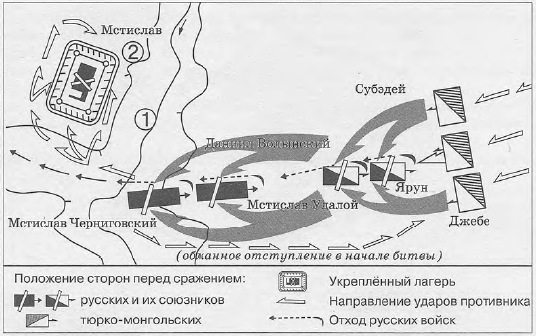 В начале 1220-х годов в южнорусских степях появились войска, пришедшие с востока. То были монгольские корпуса. Летописцы сообщают о столкновениях русских князей с новыми противниками: «И приидоша иноплеменницы от востока». В ответ на это несколько князей заключили союз для совместных действий. Союз русских князей и выступление в степь В 1223 году Мстислав Романович участвовал в походе русских князей против монгольских войск. В походе участвовали князья различных линий, включая Мстислава Мстиславича Удатного и представителей черниговского дома. Летопись сообщает: «И събрашася князи многи, и иде Мстислав Романович с ними». Поход проходил через южные степи и завершился сражением на реке Калке.