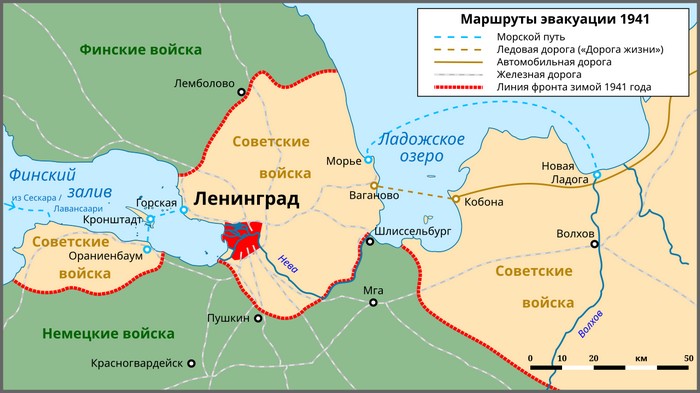 Линии фронта на 21 сентября 1941 г. Жители блокадного Ленинграда набирают