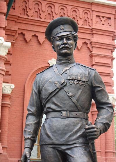 В Волгограде я бывал не раз, правда, по делам службы, а вот так просто, не спеша пройтись по этому прекрасному городу как-то не доводилось. Конечно, величественный монумент и комплекс Родина-мать никого не может оставить равнодушным, но в этот раз меня удивил совсем другой памятник, установленный на территории Мемориально-исторического музея (всего лишь... одиннадцать лет назад) усатому и чубатому казаку аж с четырьмя Георгиевскими крестами(!) на груди. Постоял я рядом с ним, почесал затылок, задумался, а есть у нас в стране ещё один памятник полному георгиевскому кавалеру или нет. Увы, не припомнил.