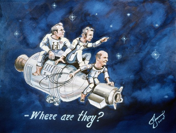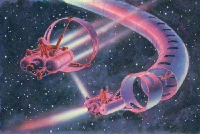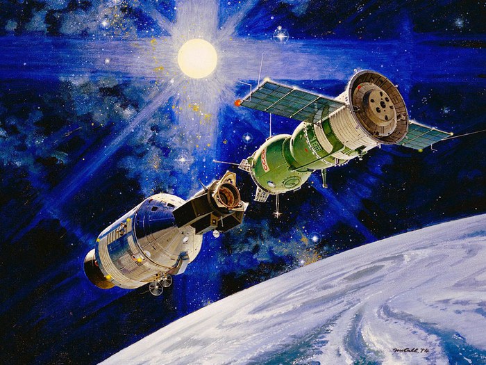 «…слышал анекдот? Летит, значит, “Союз—Аполло” пристыкованный. Проплывают над есенинской россиюшкой-матушкой-землёй: бескрайние реки-моря-проливы… Бесконечные пашни. “Большие города, пустые поезда...” Астронавты смотрят вниз: как там, что? А там — сплошные цветовые блики-отражения: будто от бинокля или подзорной трубы. Ихний командир Стаффорд спрашивает нашего Леонова: типа слышь, Лёха. Нифига у вас народ прошаренный — супер! — столько телескопов снизу направлено в Космос? А Леонов такой смеётся: “Да не, Томас — не телескопы. То — мужики из горла́ водку пьют”».